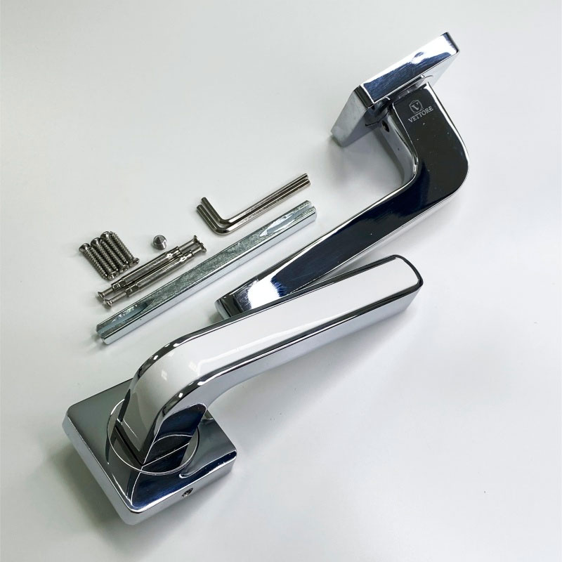 Комплект: две ручки на одно дверное полотно, монтажный комплект, соединительный квадрат (8мм*8мм*110 мм).